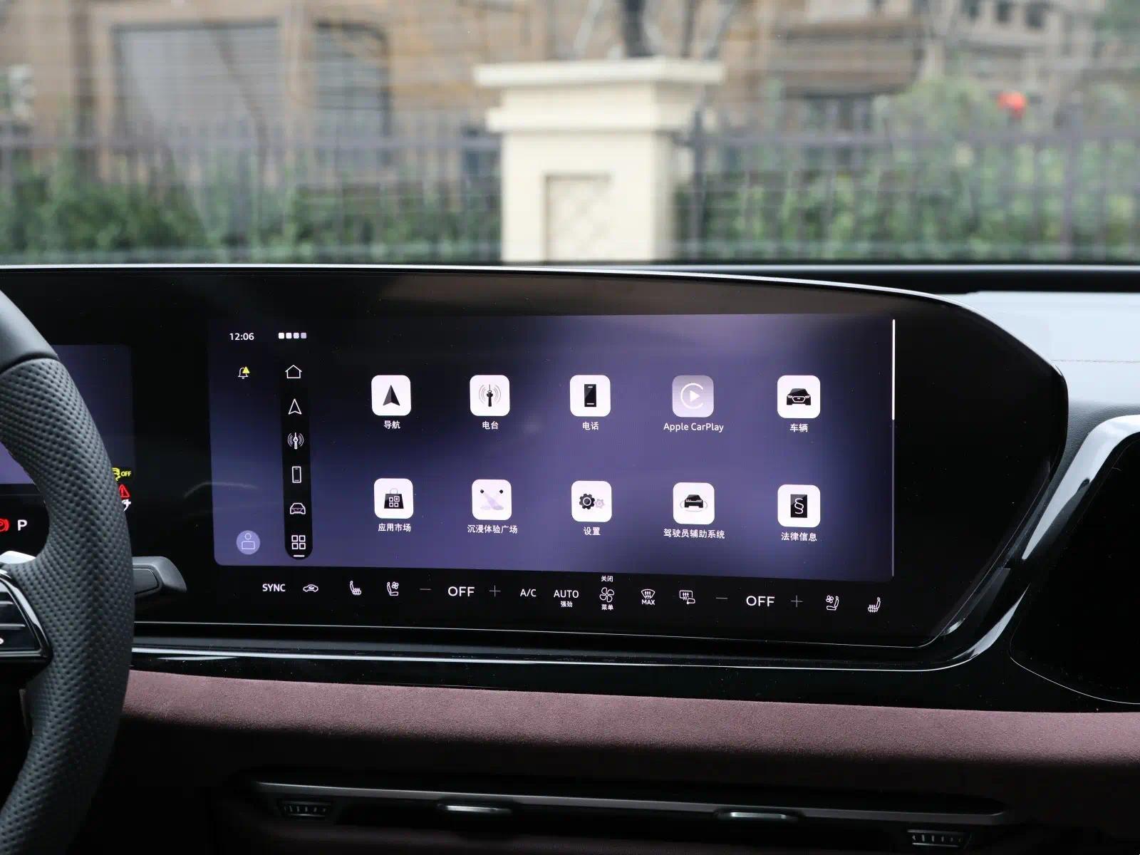 进入到车内,新款奥迪A6L用上了家族最新的三联屏设计,中控台从左至右分别是11.9英寸仪表屏、14.5英寸中控屏和10.9英寸副驾屏,结合W-HUD以及后排触控屏,可实现五屏联动,此外,车机还与时俱进的加入了四区域语音识别控制以及应用商店功能,而像CarPlay手机互联功能也没有落下,科技感有了明显提升。