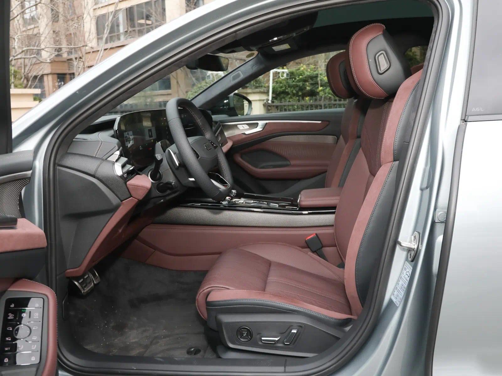 车身侧面有着溜背式设计,与半隐藏式门把手结合在一起,展示出动感的一面,中高配车型上还配有21英寸轮圈,进一步强化了它年轻化的属性。车尾部分大灯组采用纵向分体+水平贯穿风格,点亮后具备不错的辨识度,在尾灯组下方,设计师还为其加入了黑色的波纹装饰板,乍一看上去颇有几分奥迪R8的影子。
