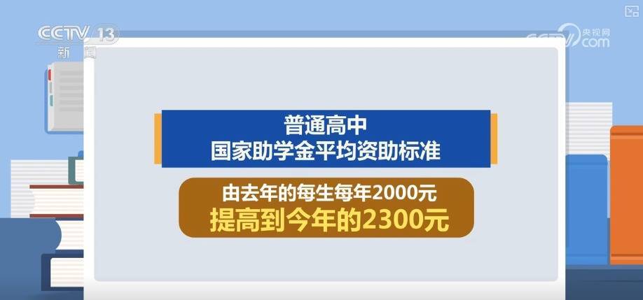 r此外,普通高中国家助学金平均资助标准,由2024年的每生每年2000元提高到2025年的2300元;中等职业学校(含技工院校)国家助学金平均资助标准,由2024年的每生每年2000元提高到2025年的2300元。 新学期历史新教材充实抗日战争史内容