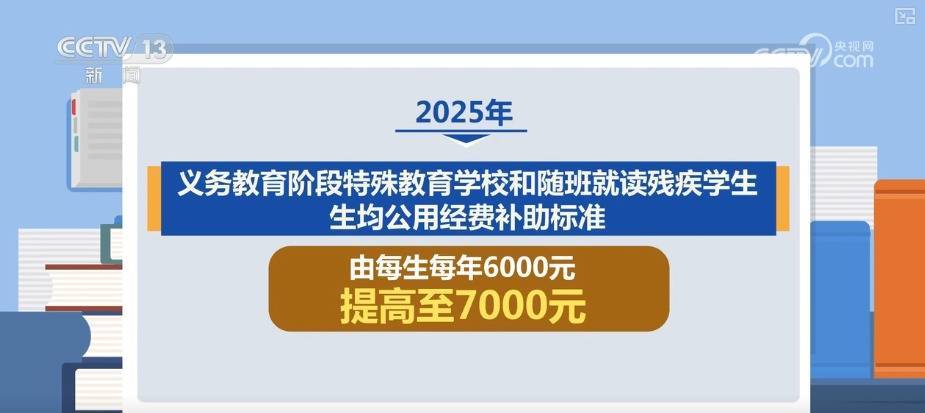 r2025年8月,财政部提出进一步加大对特殊教育学校支持保障力度。继续安排特殊教育补助资金5亿元,支持地方持续改善特殊教育学校办学条件。2025年,义务教育阶段特殊教育学校和随班就读残疾学生生均公用经费补助标准由每生每年6000元提高至7000元,惠及约91万残疾学生。