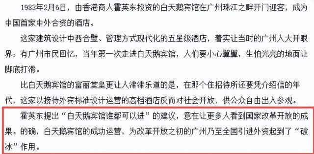 上世纪80年代,霍英东主导投资了广州白天鹅宾馆。