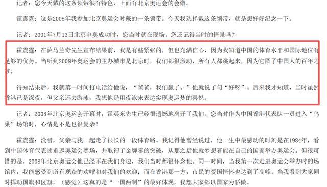 2001年,霍震霆亲眼见证了萨马兰奇宣布北京获得2008年奥运会主办权的历史性时刻。