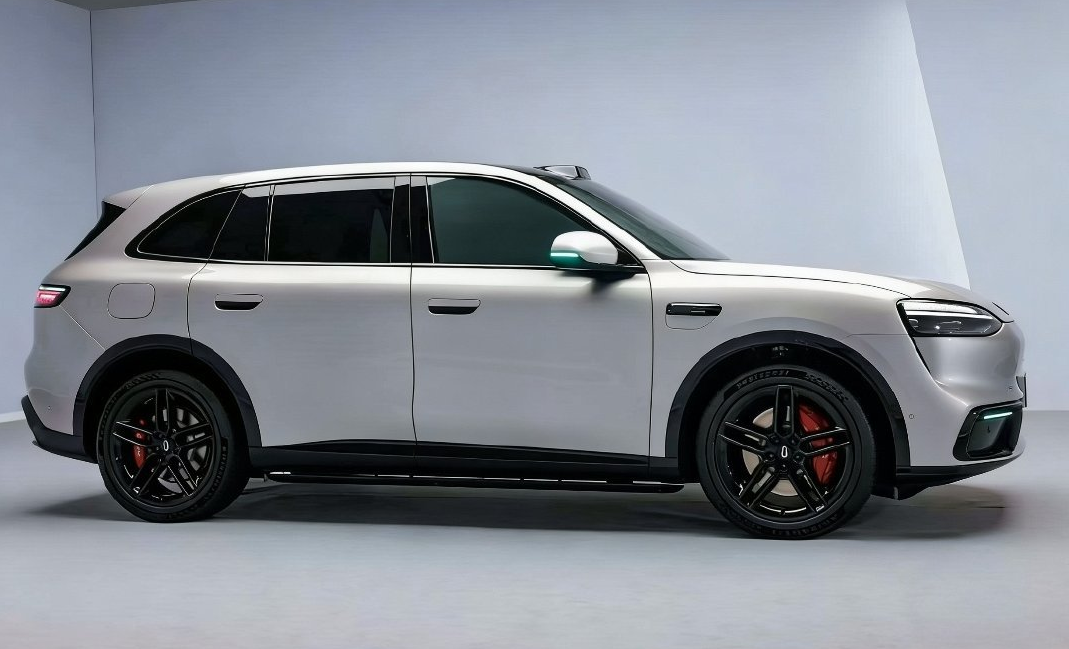 车辆侧面轮廓更圆润动感,车顶线在后半部分内收,D柱大斜率前倾,看起来更有运动范。车门线条依旧简洁,采用M7、M8同款半隐藏式门把手,轮毂样式有花瓣状、多辐条、熏黑等多种风格,可搭配红色刹车卡钳,进一步强化运动气质。